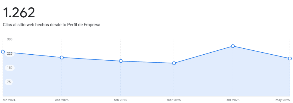 Una de las métricas más relevantes es el número de personas que hacen clic en el sitio web directamente desde la ficha. Esta acción indica un interés claro en conocer más sobre tu empresa, tus servicios o realizar una conversión.