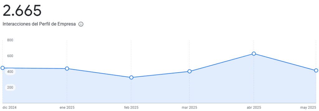 Una de las mayores ventajas del Google Business Profile en 2025 es su panel de estadísticas mejorado, que te permite analizar en detalle cómo los usuarios interactúan con tu negocio.